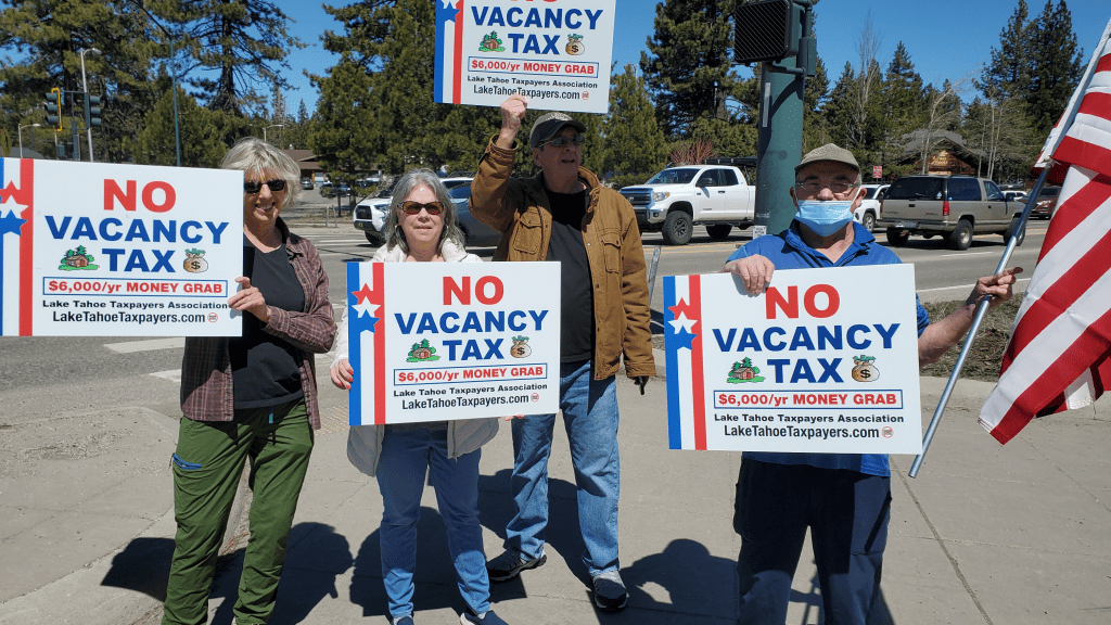 Horns were honking almost continuously, as drivers passing by declared their opposition to the tax, a $6,000.00 per year penalty for owning a vacation home in South Lake Tahoe.